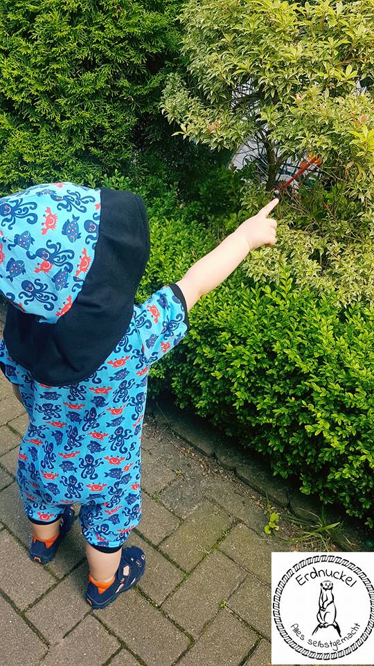 Den shorty Overall könnt ihr aus allen dehnbaren Stoffen nähen. Sei es nun Jersey, Sweat oder Fleece.
