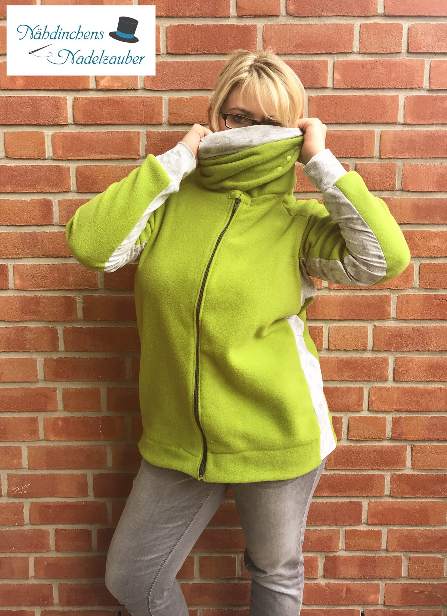 MissZipUp ist eine nicht eng anliegende Übergangsjacke, somit passt super noch ein dünnes langärmliges Oberteil darunter!