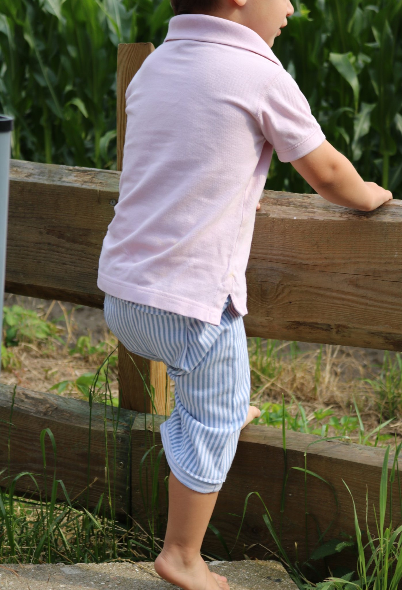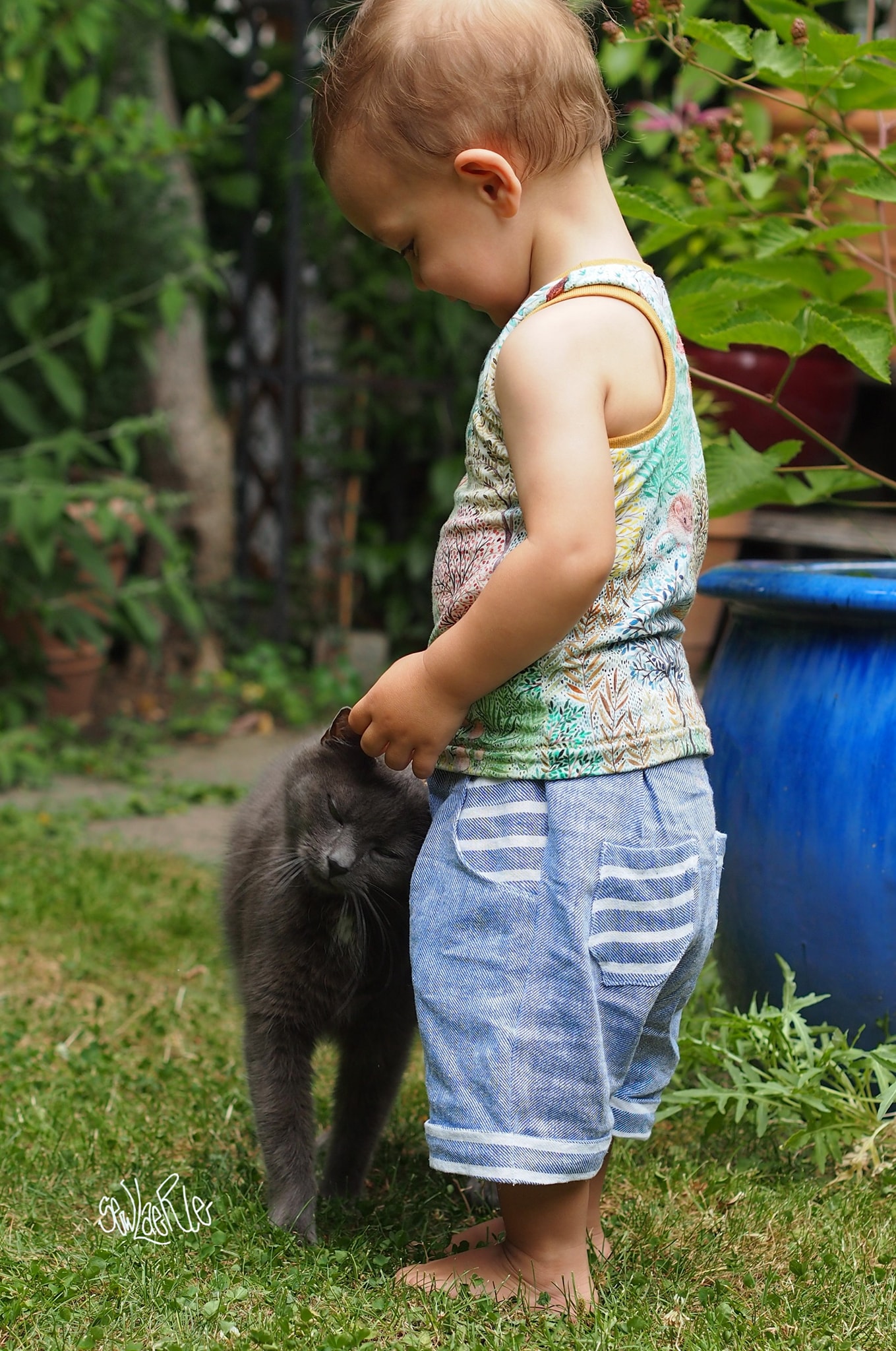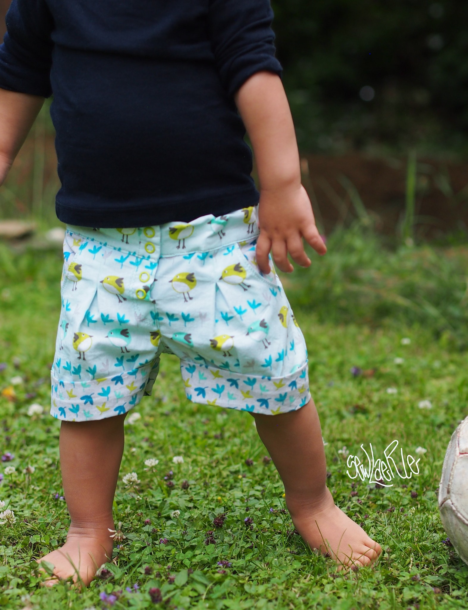Das besondere an der Hose ist das Knopflochgummiband im Saumbund. Hiermit kann man die Weite sehr gut und sehr einfach an das eigene Kind anpassen.