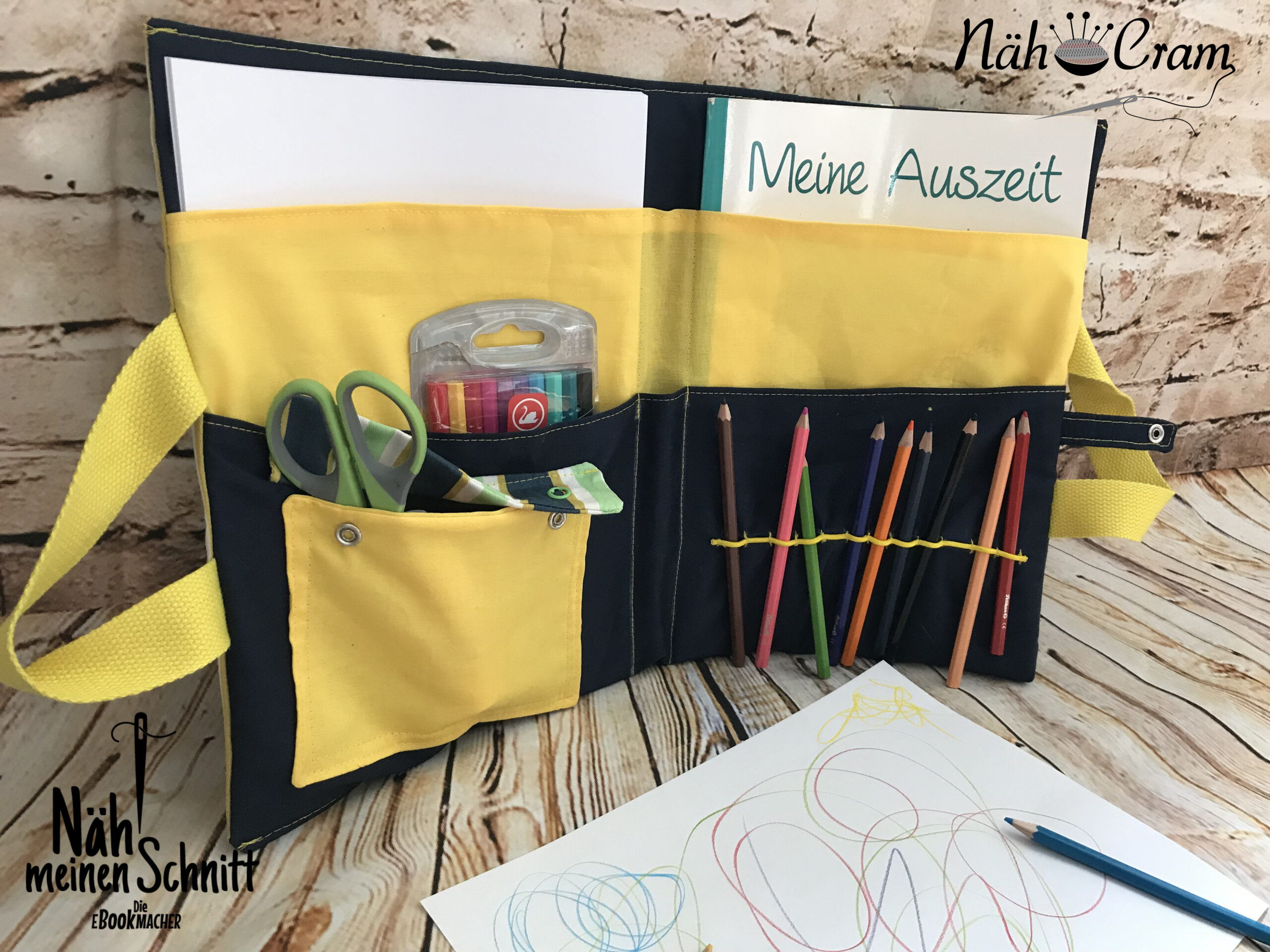 Und damit es unterwegs, im Auto, abends im Restaurant oder bei einem Geburtstag der großen nicht langweilig wird, gab es noch eine tolle Zeichenmappe dazu. Hier finden Buntstifte, Schere, Radiergummi, Zeichenblock und was man sonst noch so benötigt ihren Platz.