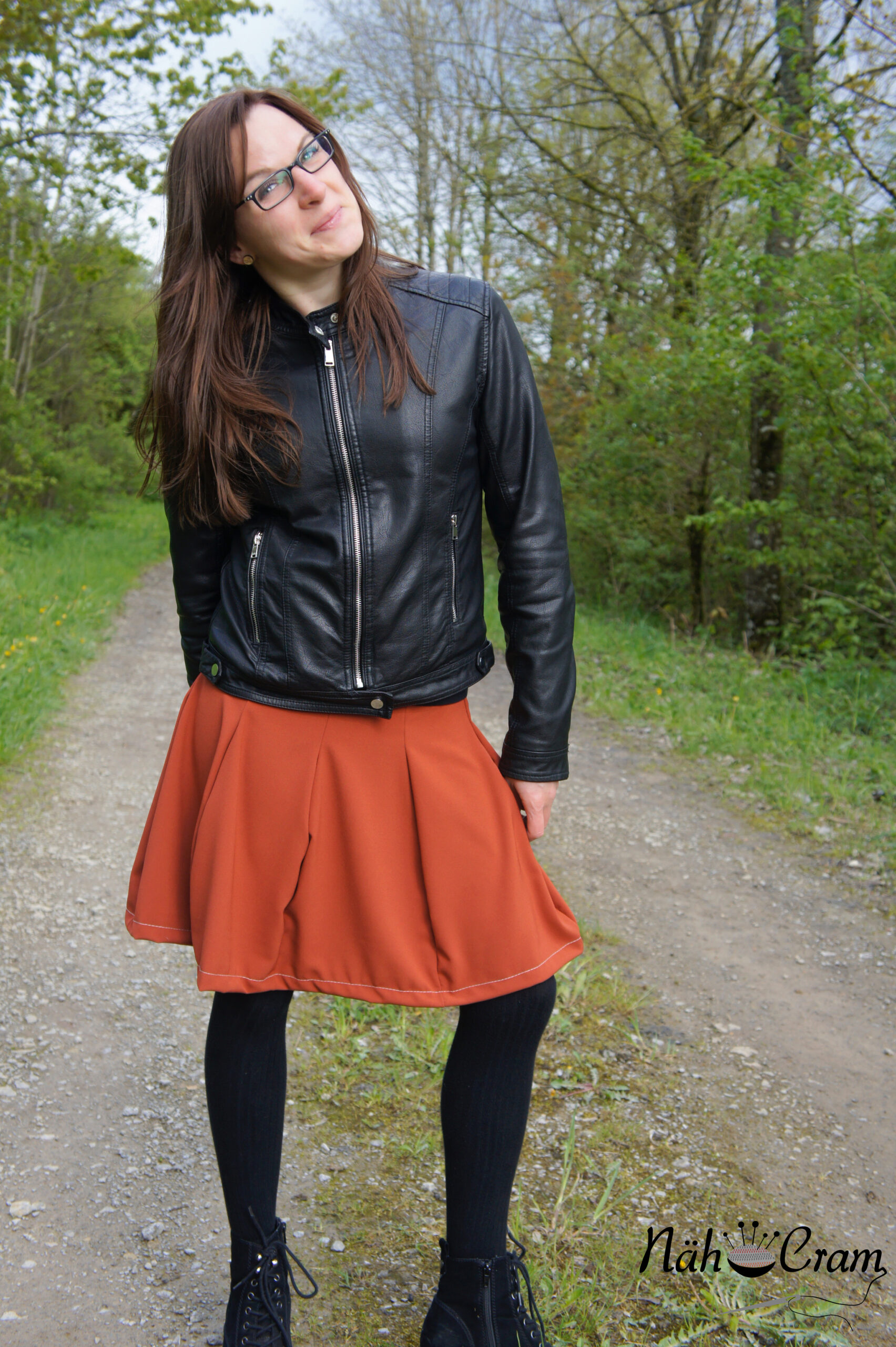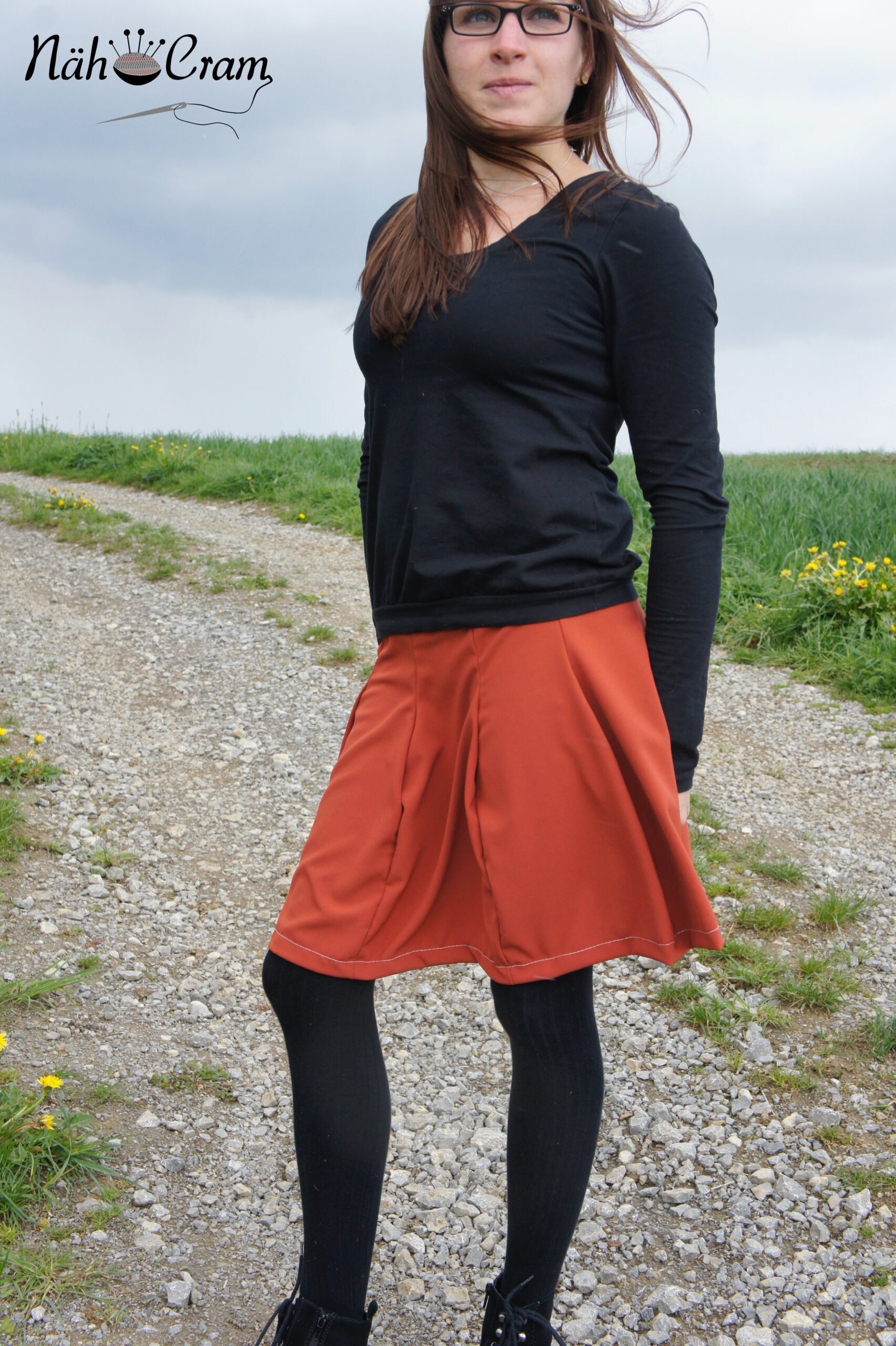Ich habe den Rock aus Viskosecrepe genäht. Ein leicht fallender, kaum dehnbarer Stoff. Er trägt sich richtig toll.