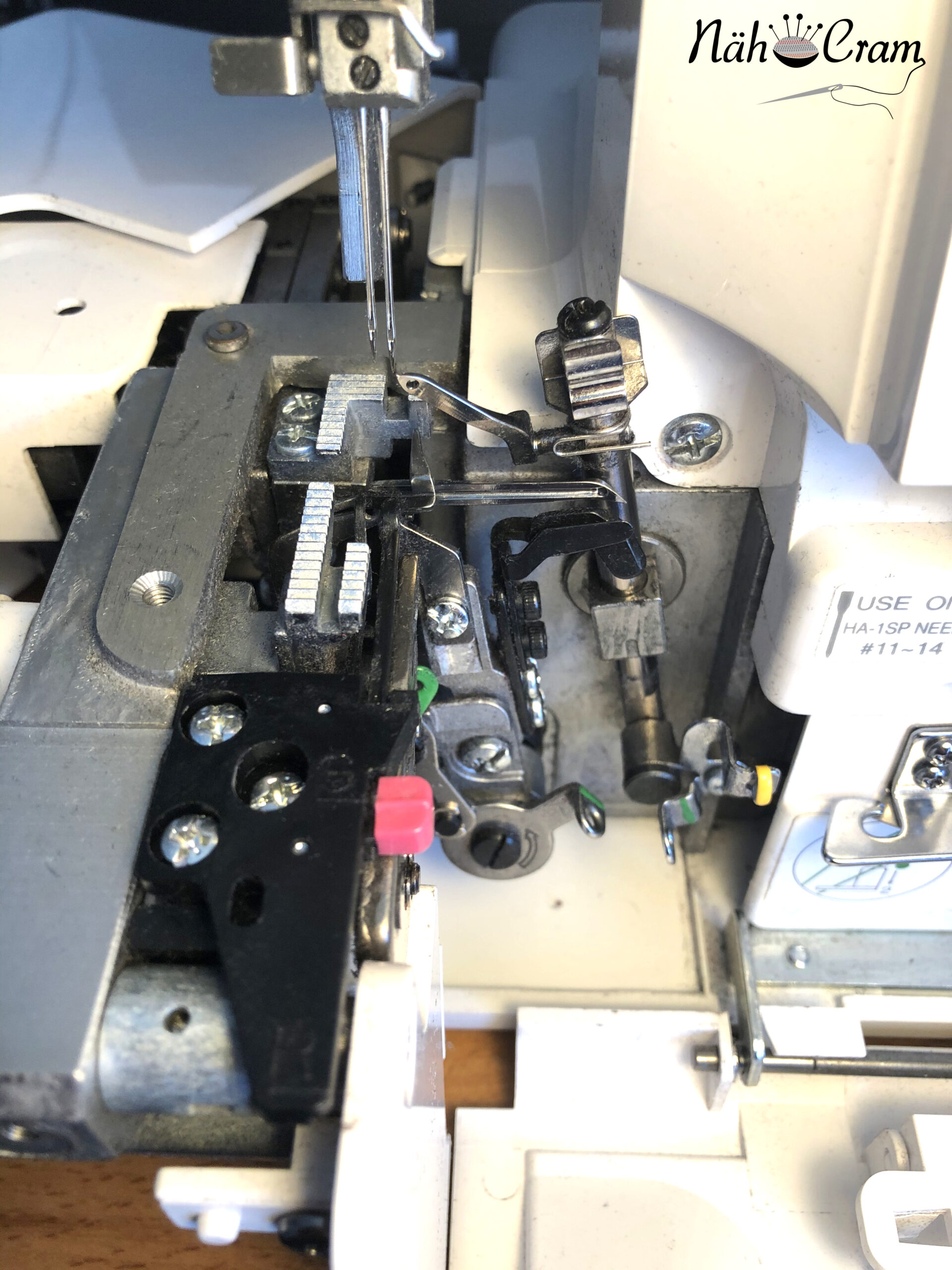 So sieht die Maschine nun im Greiferraum und auf der Stichplatte aus. Was für ein Unterschied.