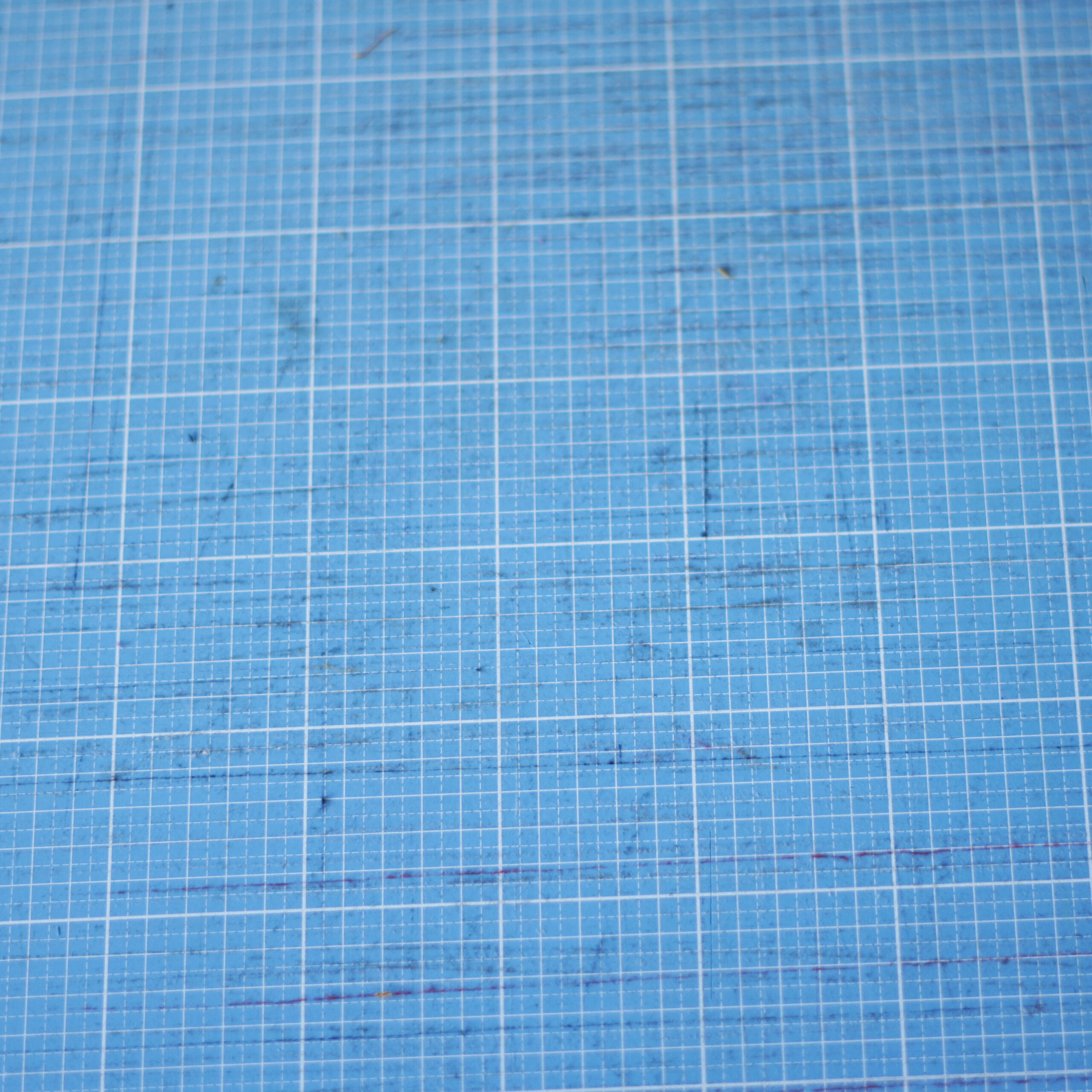 Wenn du deine Stoffe immer wieder im selben Bereich der Schneidematte zuschneidest, können hier mit der Zeit tiefe Rillen entstehen. Versuche einfach mal den Stoff auch mal an einer anderen Stelle aufzulegen oder die Schneidematte einfach zu drehen.