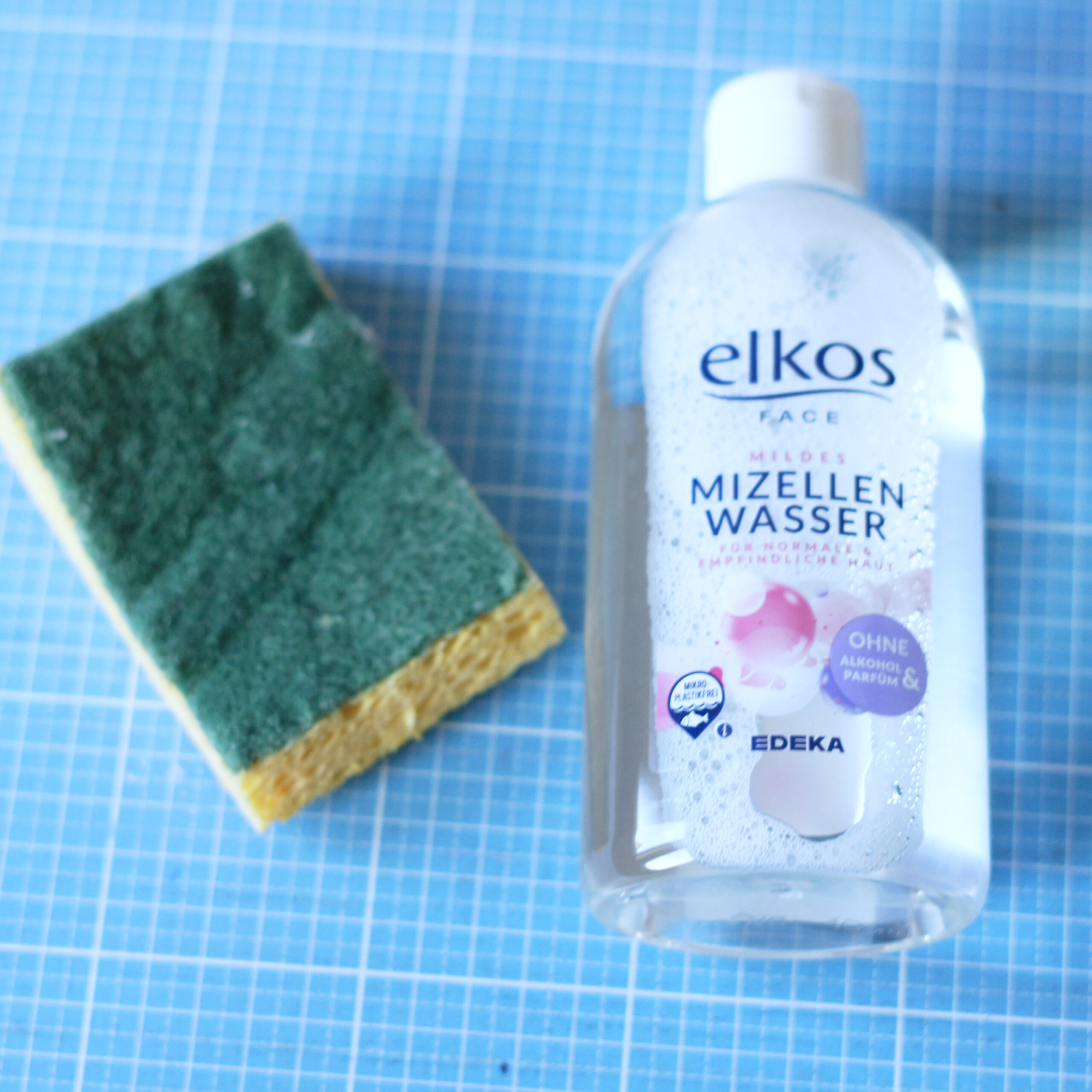 Anschließend nehme ich einen Küchenschwamm und Mizellen-Gesichtswasser (ja hört sich seltsam an, aber funktioniert super). Es schadet der Oberfläche nicht und sie wird super sauber. Zudem gehen auch Rückstände von Kleber, Farbe, etc. weg.