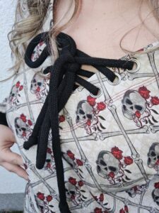 - Blickfangender Ausschnitt mit individuellen Gestaltungsmöglichkeiten: Der tiefe Ausschnitt macht dein Kleid zu einem echten Hingucker. Du kannst verschiedene Kordeln verwenden, um den Ausschnitt gekonnt in Szene zu setzen. Falls du den Ausschnitt weniger tief bevorzugst, kannst du auch einen Einsatz einnähen.