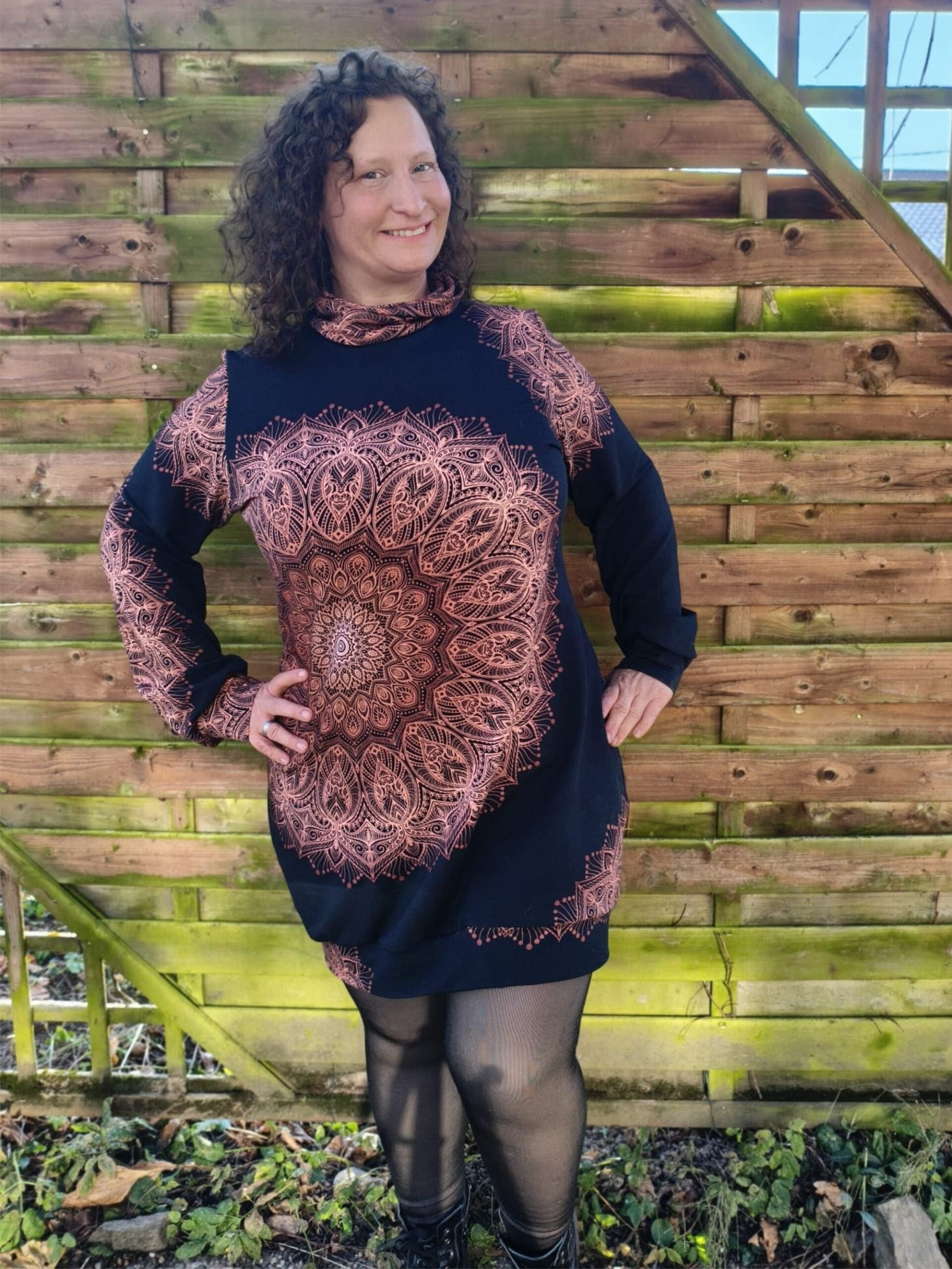 - Größenvielfalt für unterschiedliche Figuren: Das Hoodiekleid ist in den Größen 32 – 50 erhältlich.